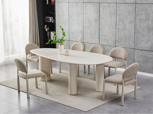 Linaria 150cm 7pc Extendable Pedestral Dining Table & Chair Set of 6