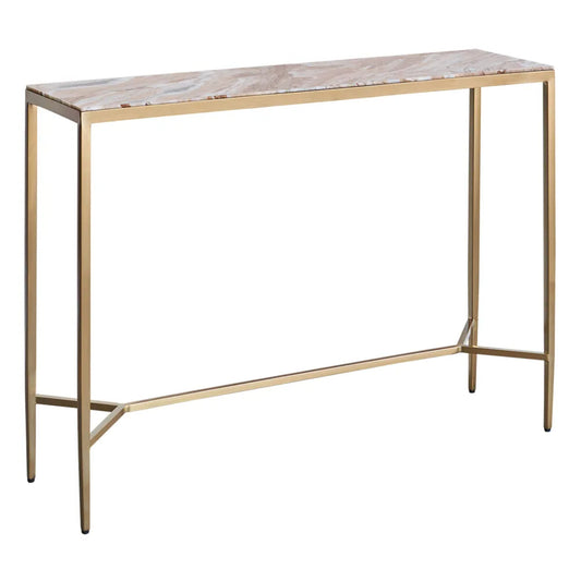 Chloe Large Dusty Jade Marble Console Table - Gold