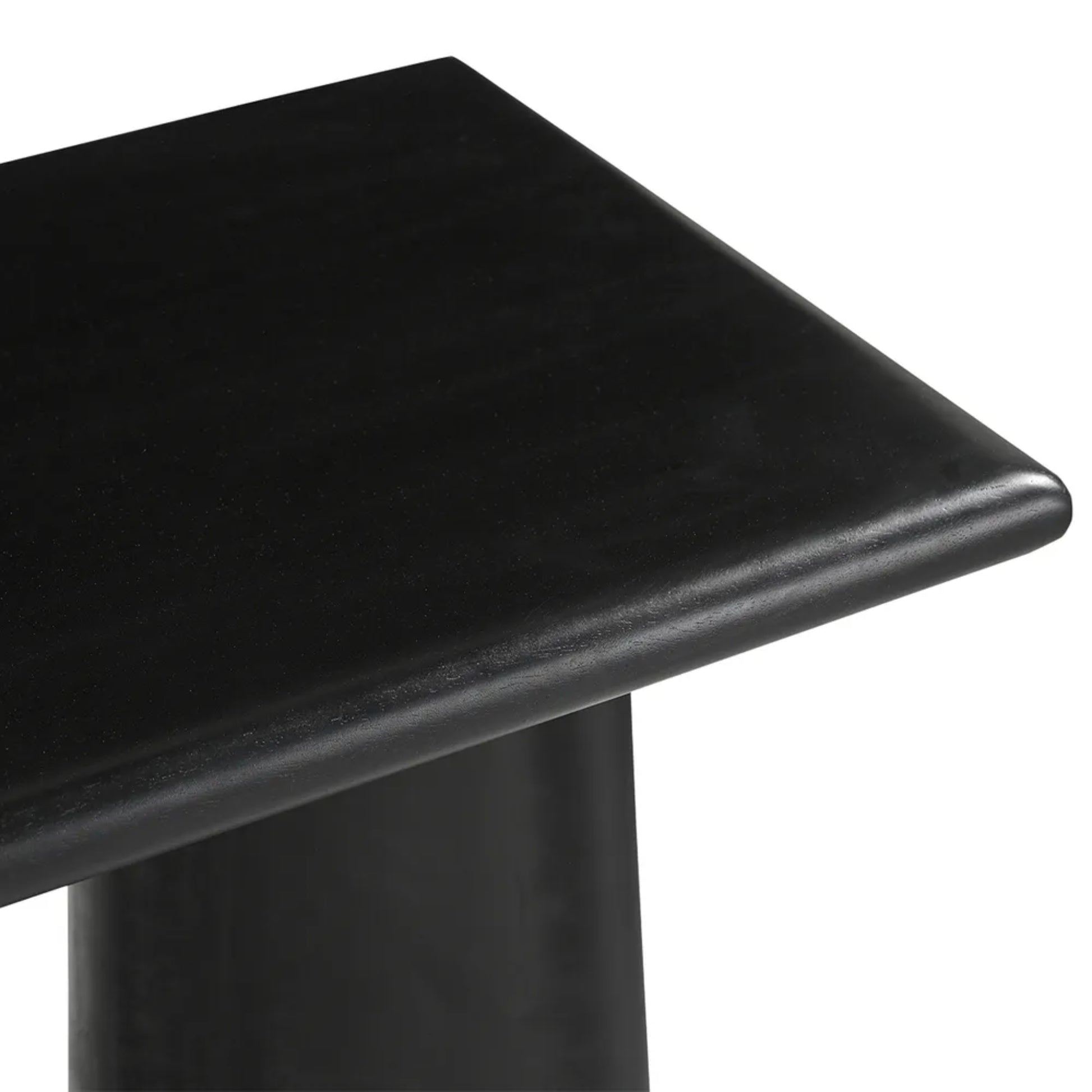 This sculptural piece showcases solid acacia wood construction with a gracefully curved top, tapered legs, and clean architectural lines that define contemporary elegance. The bold Black finish makes a confident statement in modern interiors, while its refined silhouette adapts seamlessly to diverse design schemes.