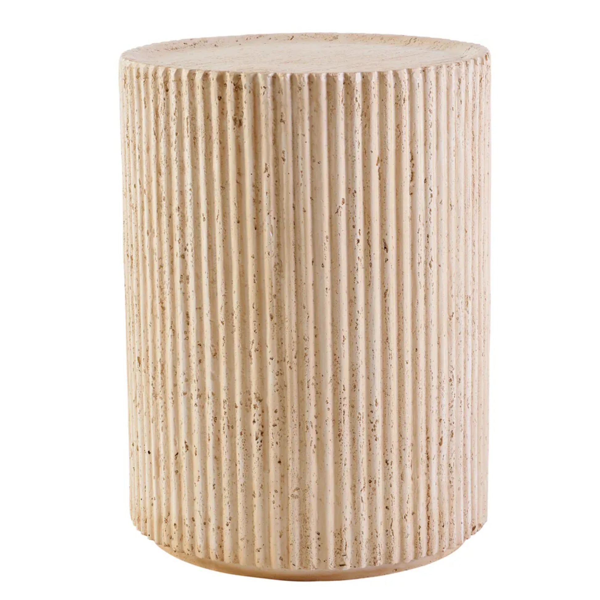 Transform your space with the Kos Fluted Stone Side Table, where architectural detailing meets natural beauty.
