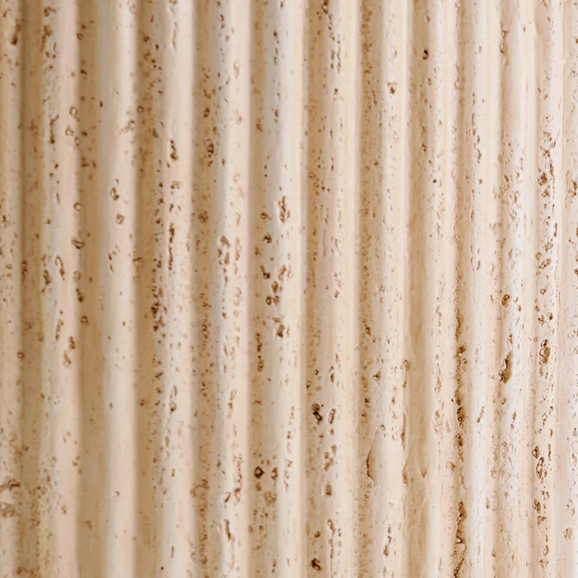 The distinctive vertical fluting creates depth and visual intrigue, while the organic stone surface brings warmth and authenticity to your décor.
