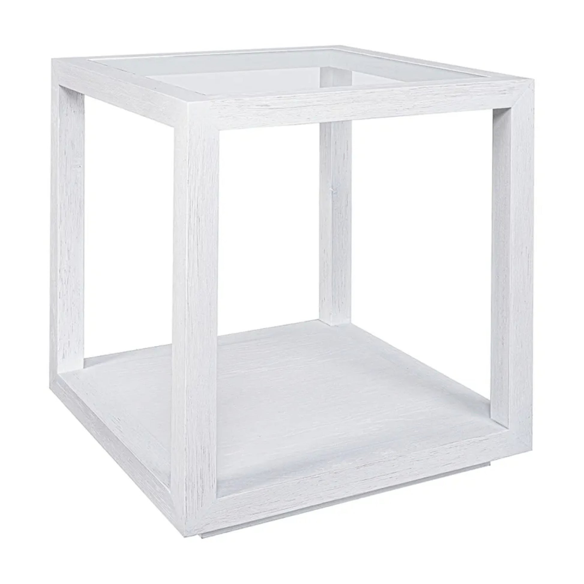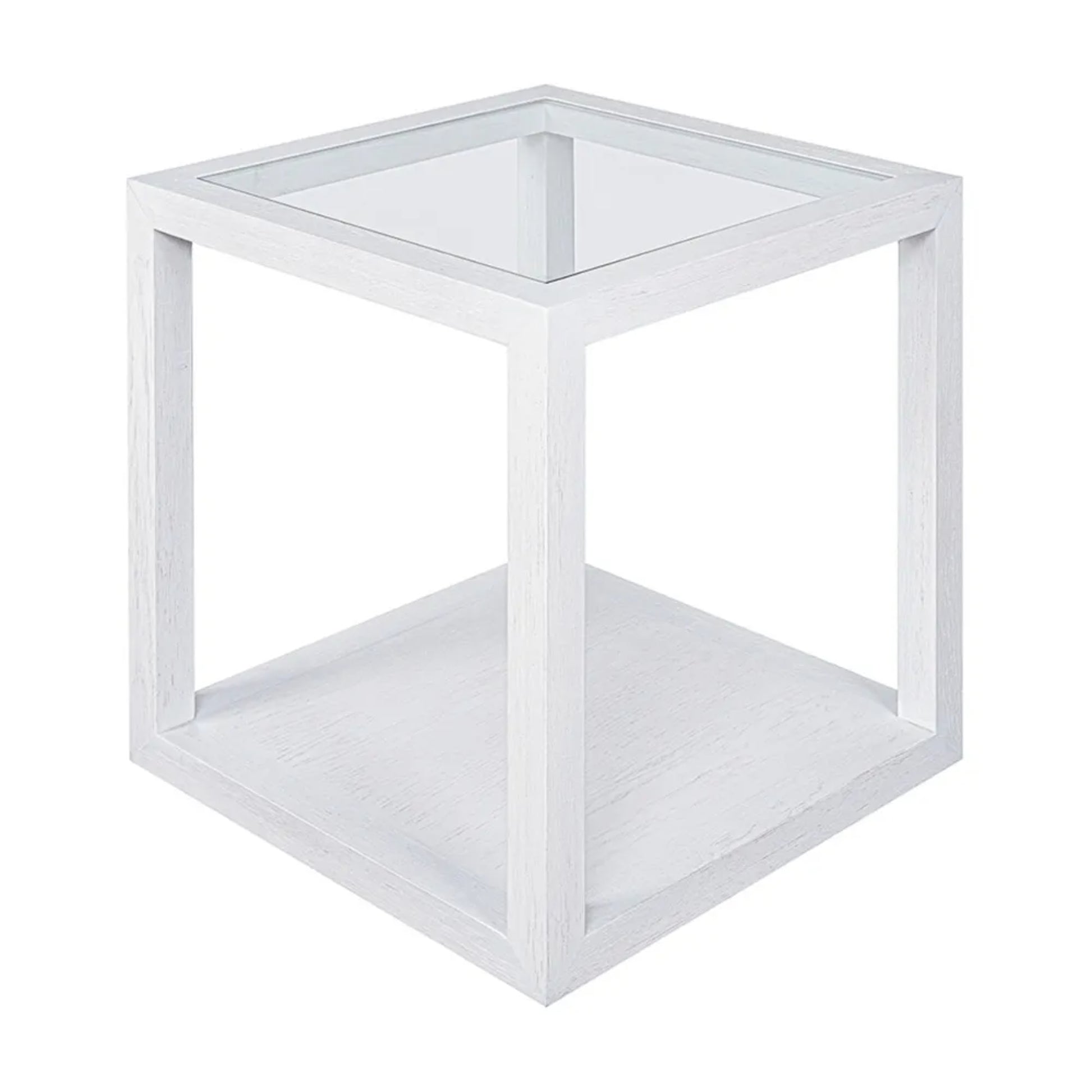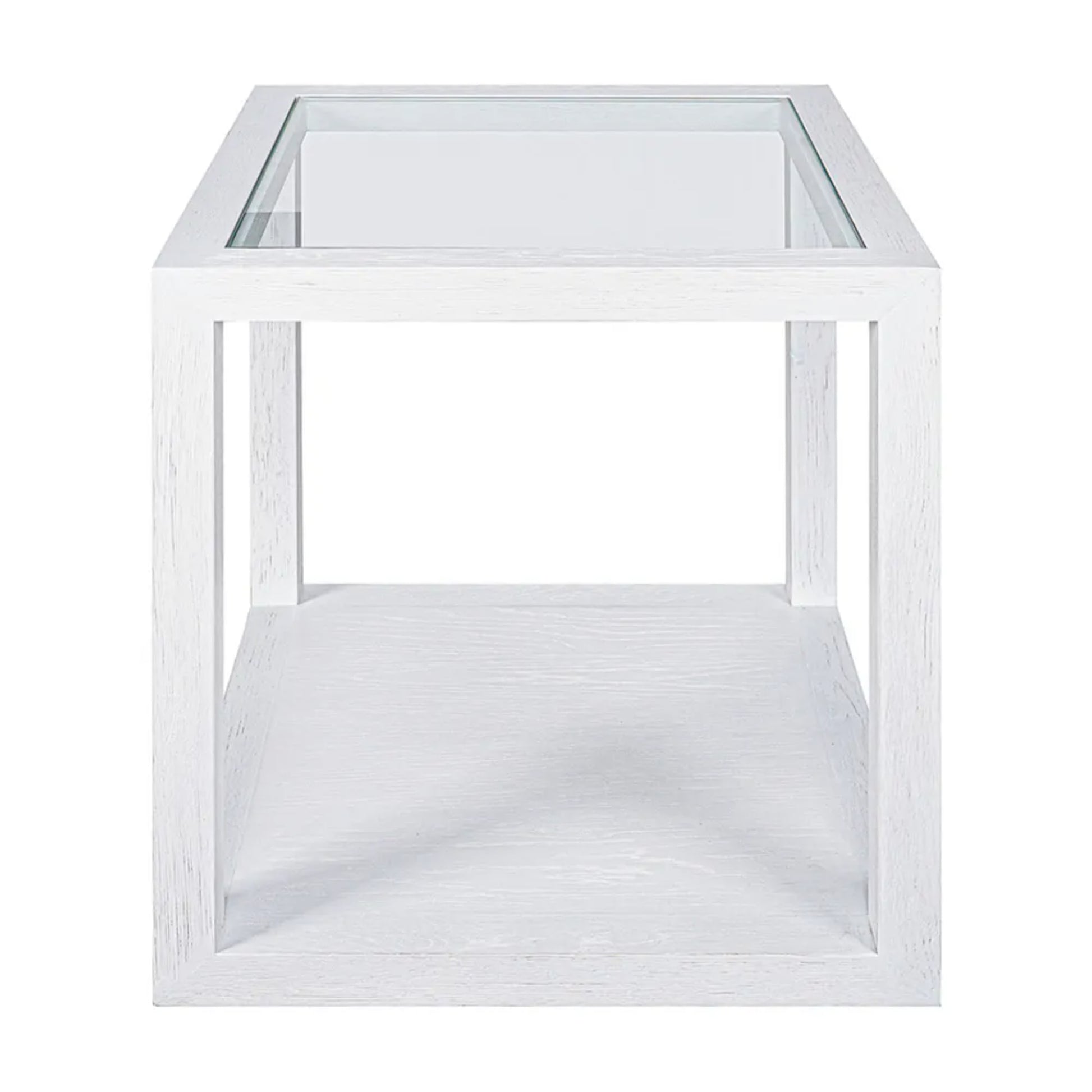 This statement piece combines a sturdy metal frame finished in clean white, with a sleek tempered glass top that brightens any room while maintaining durability. The lower shelf adds practical storage and display space, making it ideal beside sofas, armchairs, or beds.