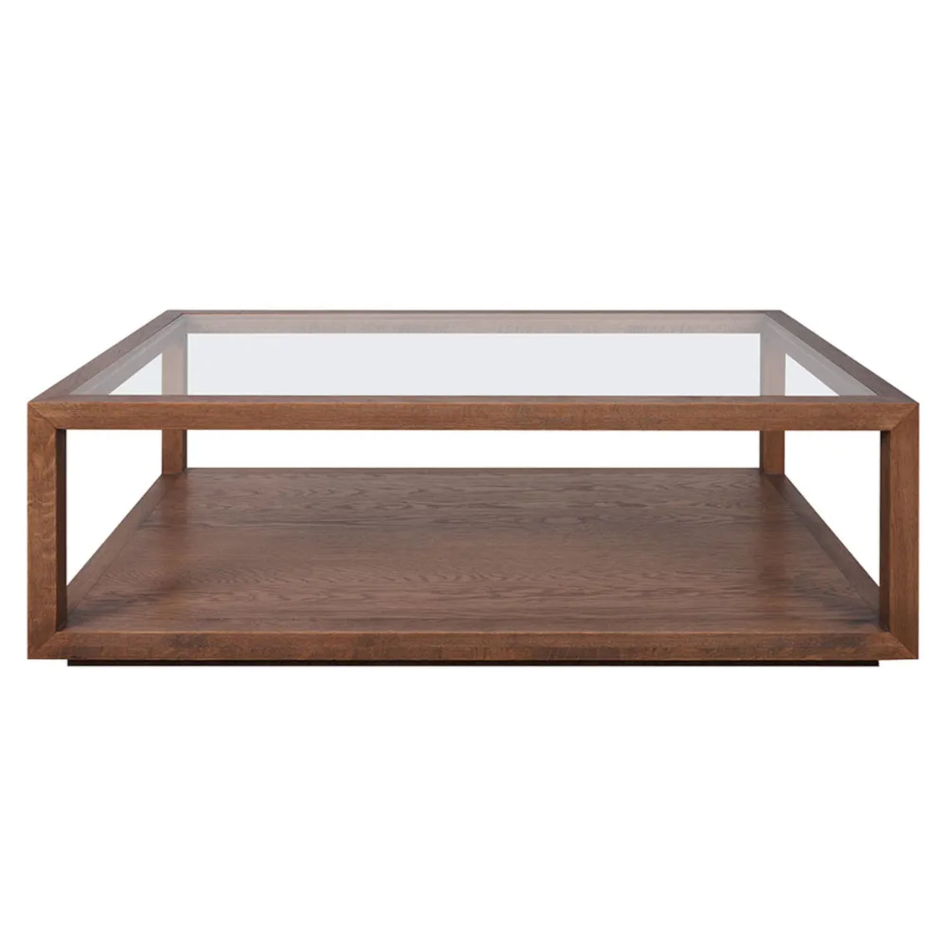 The Sadie Oak Rectangle Coffee Table brings understated luxury to your living space with its striking combination of brushed oak wood and pristine tempered glass.