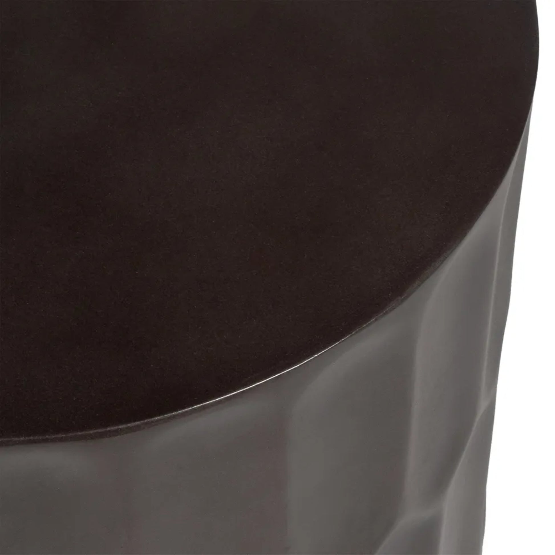 The Sienna Side Table commands attention with its striking round concrete silhouette and semi-gloss carved finish in deep lava black.
