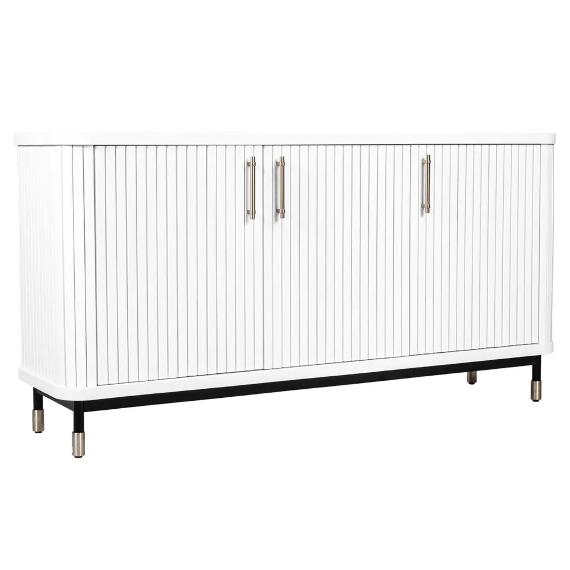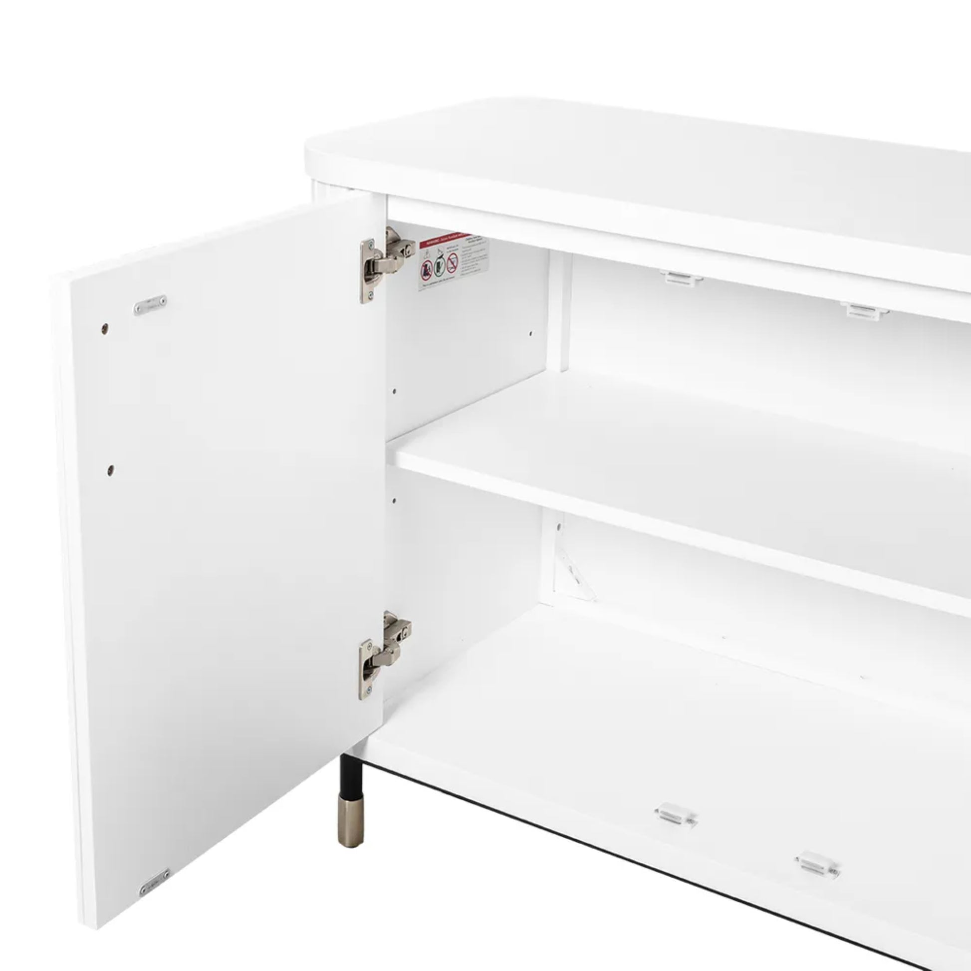 | Brass-finished handle refinement: | Brass handles add warmth and a luxe finishing touch, enhancing the buffet’s designer feel. A beautiful contrast against the white finish. |