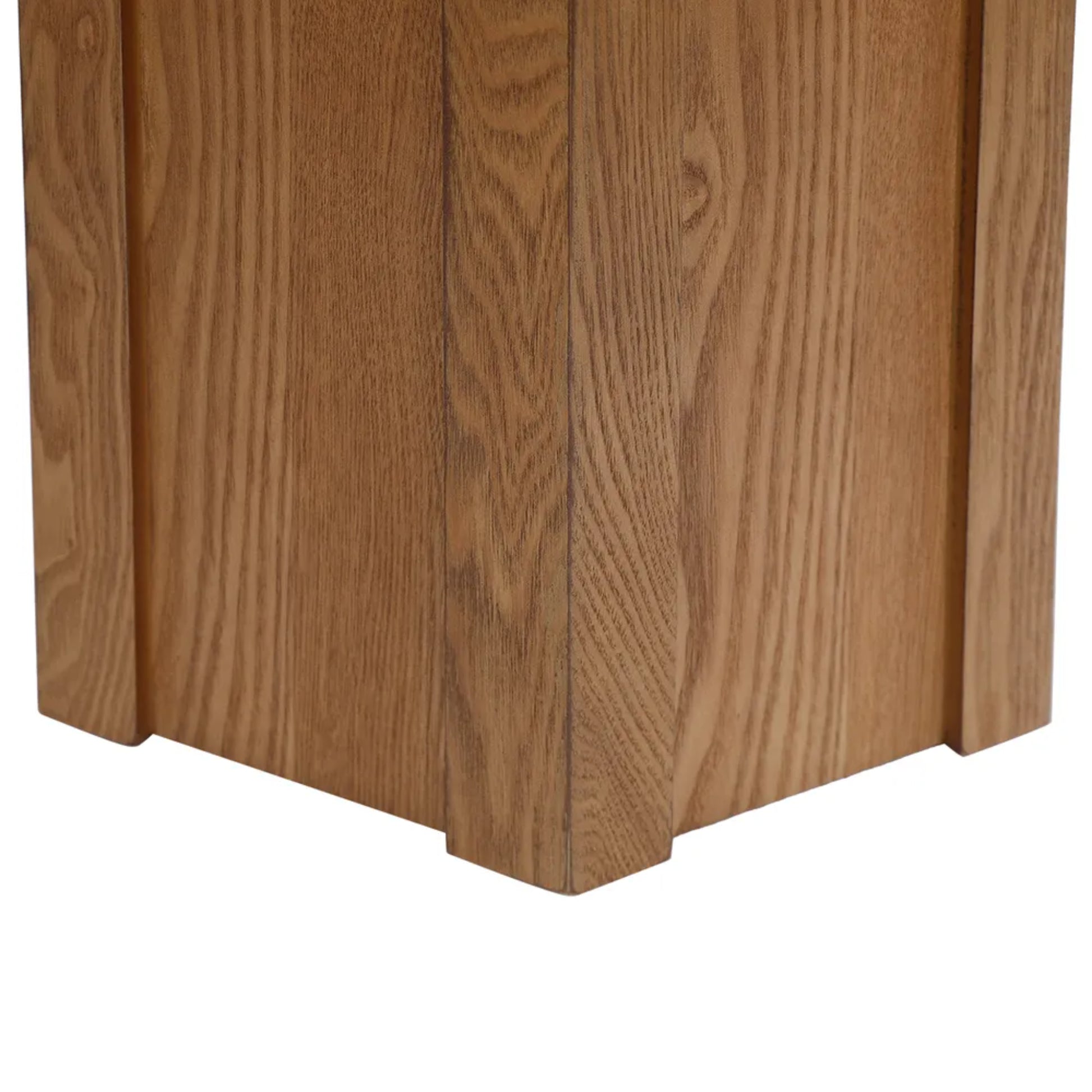 This striking geometric piece brings contemporary sophistication to any space, combining bold modern design with warm timber character. The distinctive hexagonal shape creates visual interest while the warm walnut finish adds understated elegance.